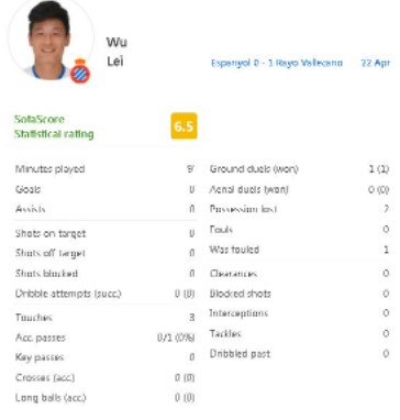 武磊数据:上场时间再次不足10分钟,仅3次触球0射门